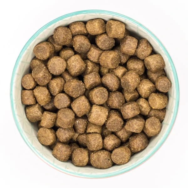 Composition: White rice (38%), chicken meal (27%), chicken oil, oats, peas, whole linseed, fish meal, beet pulp, sunflower oil, seaweed, vitamins & minerals, yucca extract.