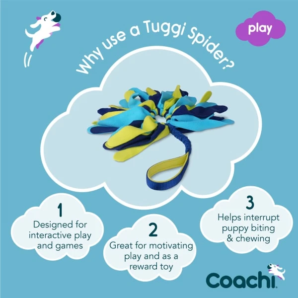 The Coachi Tuggi Spider is great for playing tug and also as a fun and enticing toy for games and rewarding recall, it can also help interrupt play biting & chewing. These super stimulating toys are a great alternative and or addition to food rewards, especially for those high energy dogs who love to play. Harness the power of play and become your dog’s best friend. The Coachi reward toys have been designed for you and your dog to have fun together whilst training. They are great for improving recall, discouraging chasing and perfect for reducing puppy mouthing and biting. Maintain the energy and enthusiasm by only using these toys as part of interactive play. Also good for dogs who are not treat motivated or need to watch their waistlines! The Coachi range was created by the experts at Company of Animals and it is designed to focus on promoting effective, humane and positive methods, making training simple and rewarding for both owners and their dogs.