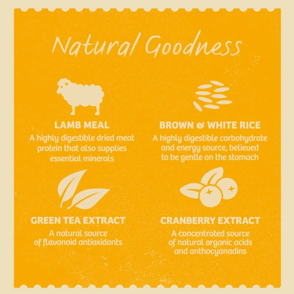 We’ve taken a handful of nature’s nourishing ingredients and combined them with flavourful lamb for highly digestible, quality protein. Then, using all our knowledge and experience, we’ve added all the vitamins and minerals your pet needs to stay happy, healthy and full of life.