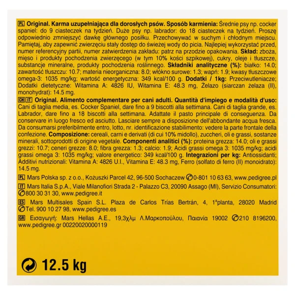 Composition: Cereals, meat and animal derivatives (including 10% marrowbone), various sugars, oils and fats, minerals, derivatives of vegetable origin.