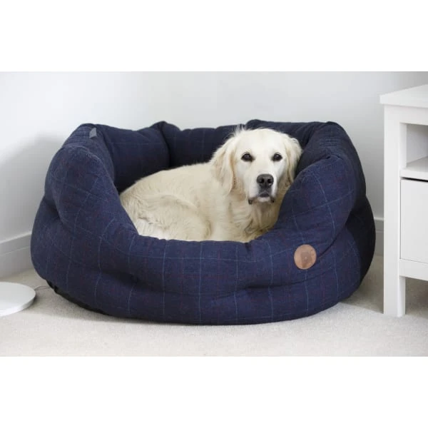 Petface Midnight Tweed oval bed will help your pampered pooch to relax and sleep comfortably by keeping them warm and giving a feeling of security. Tweed is an exceptionally durable fabric, perfect for fashionable dogs and a great, stylish addition to any living space. The cushion is reversible with tartan one side, fleece on the other. Anti-slip base to prevent any sliding. It is machine washable at 30 degrees.