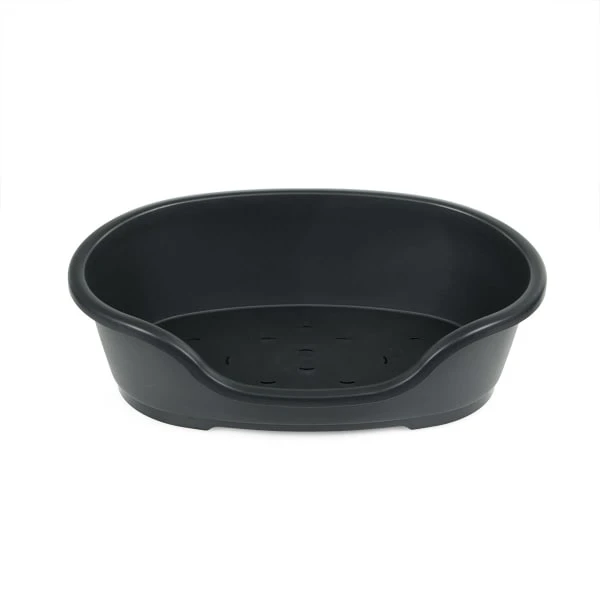 Petface Plastic Dog Bed with ventilation holes and rubber feet to prevent slipping. The bottom of the bed is perforated to guarantee maximum air circulation. Thanks to the lower entrance, your pet can enter or exit the bed easily which is practical for young, older or sick pets. The elegant shape of the bed allows your pet to relax in a comfortable position. The Cosy bed is very easy to clean. Just wipe it off regularly with a wet cloth and mild detergent so that bugs do not have a chance.