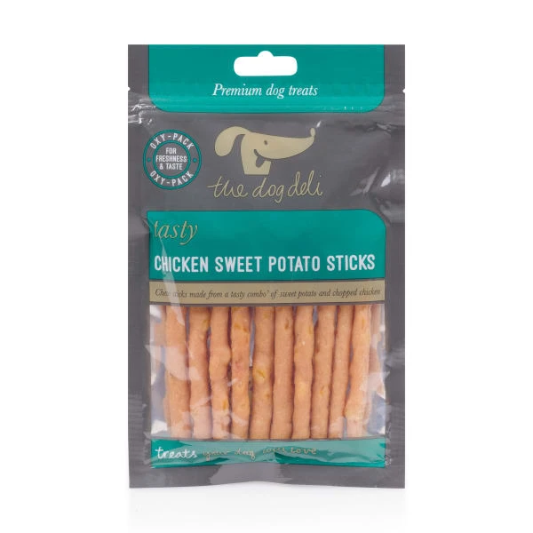 Petface the dog deli chicken sweet potato sticks are premium tasting dog treats made with the highest quality chicken. The perfect treat for rewarding and learning new tricks. This will be a favourite with all canine connoisseurs. Oxy-Packed for freshness in a resealable pouch, ideal for storage and the perfect size for slipping into a bag or pocket if you want tasty treats on the go. Pack of five is perfect to stock up on your dog’s favourite treat.