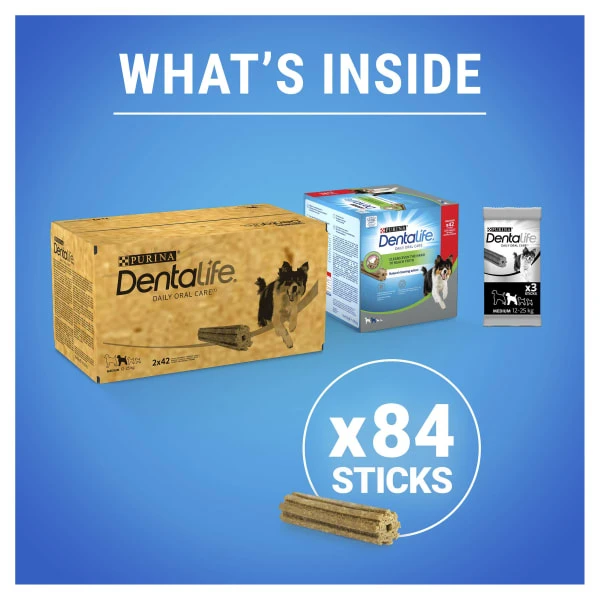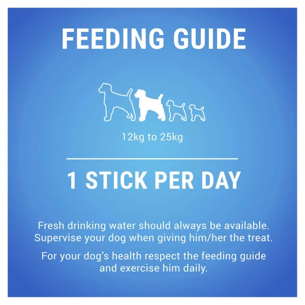 Dental chews for dogs, given once daily will help to reduce tartar build-up. These tasty sticks are made from wholesome ingredients and contain vitamin D and calcium. The ridges massage the gumline while the chewing action will clean even the hard to reach teeth. They are low in fat with no added sugar, flavours or colours.