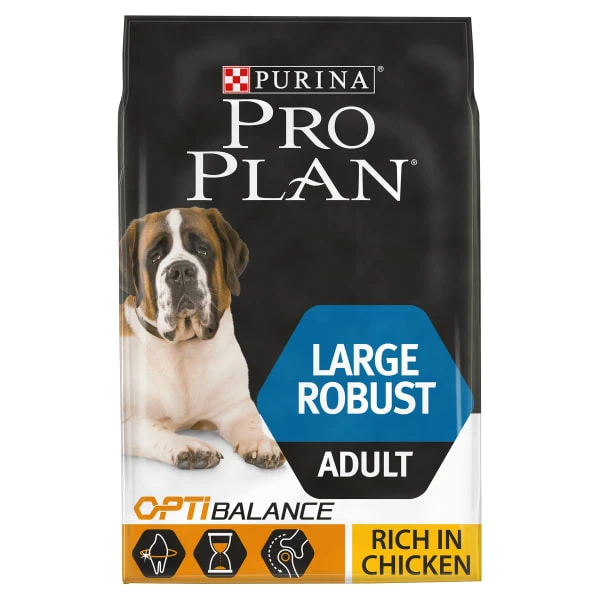 Purina® Pro Plan® Dog Large Robust Adult with Optibalance™ has been specially formulated for robust large-breed adults. It will meet all their nutritional needs thanks to a combination of carefully selected nutrients at the right levels for your dog, helping them to stay happy and healthy with every meal. Developed by expert vets and nutritionists, this complete large breed dog food will help your dog stay ready to meet all the nutritional challenges of daily life. Optibalance™ is made with high quality pieces of chicken and enriched with Vit D, Calcium and EPA/DHA from fish origin, to deliver nutritional performance and help promote adult dogs’ overall health. Optibalance™ has been specially formulated to contribute to their dental care, support their healthy joins, and help fight the challenges of ageing in your robust-breed dog. Purina® Pro Plan® Dog Large Robust Adult with Optibalance™ is delicious, complete and made with high quality ingredients – so why not try it today?