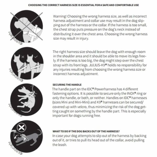- The size of the harness can be adjusted by the slide on the abdominal belt and the strong hook&loop fastener on the chest belt